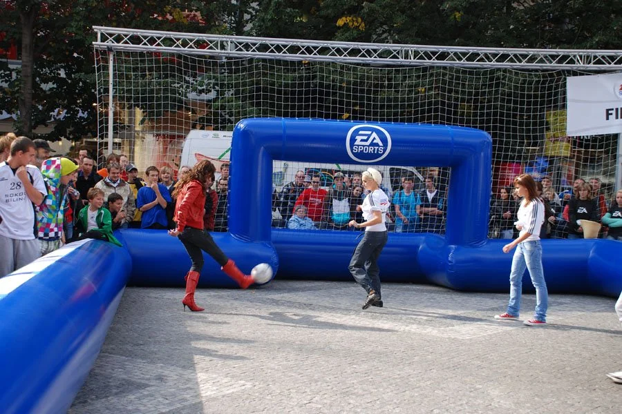 Branded and customisable Inflatables Pitches designed to your specifications from football to volleyball we have it all covered.
