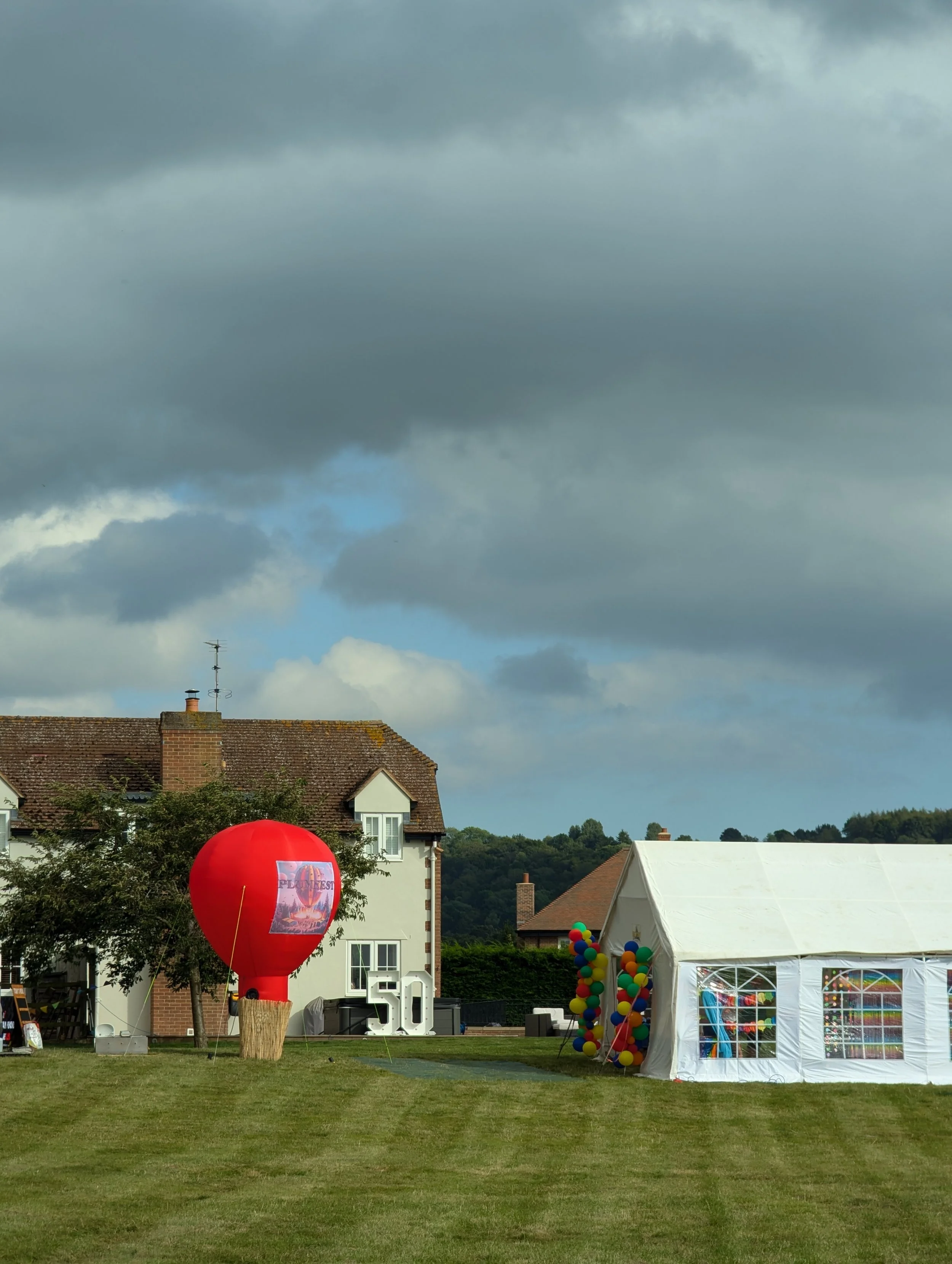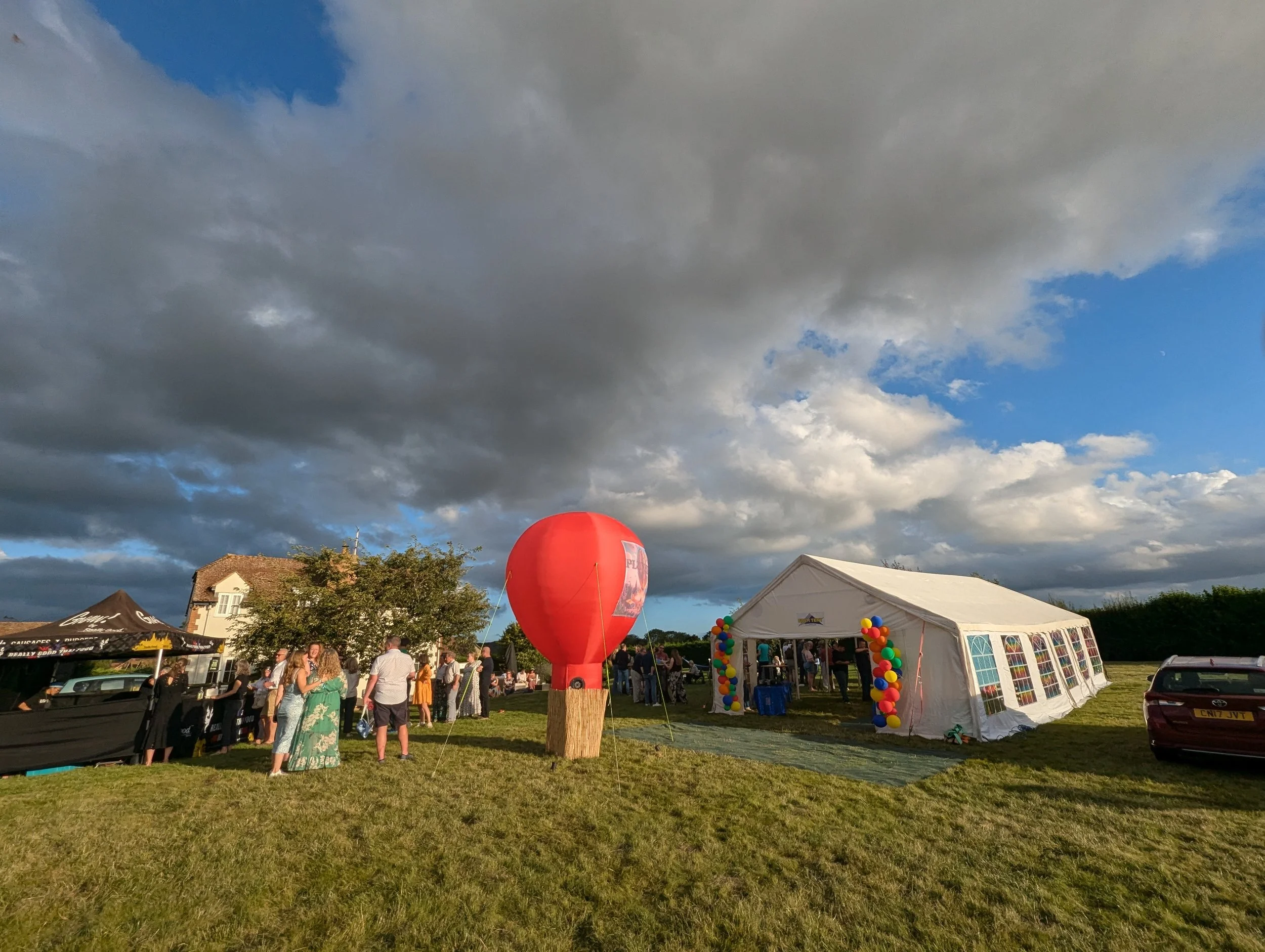 We were delighted to help Richard Vanryne celebrate his wife’s 50th Birthday. Richard wanted a Hot air Balloon feature as part of the event he was organising to help add to the general atmosphere and be a central set piece. We sent one of our Replica Inflatable Balloons to the event with specially made banners.