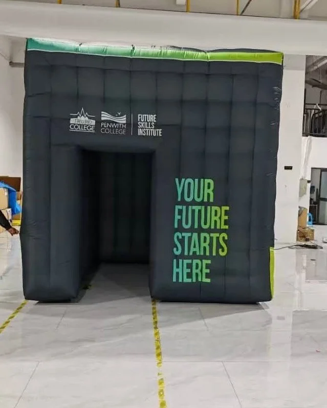 Nova Inflatables were asked to produce two Giant Inflatable Cube Tents for Truro and Penwith college. The smaller tent is a 3x3mx3m Tent. The second is a 5m x 5m x3m Tent.