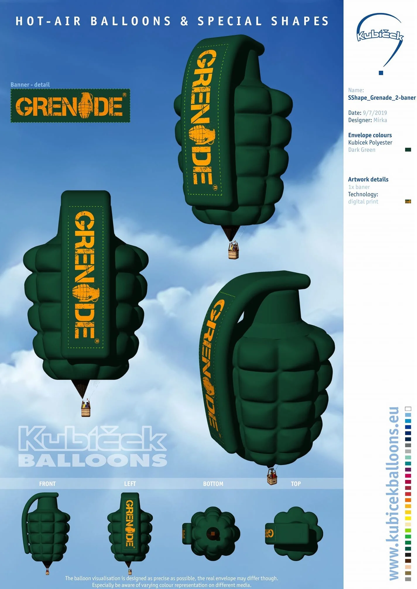 New UK Kubicek Special Shape Hot air Balloon for Grenade